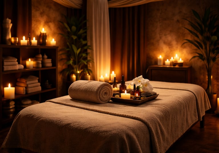 A calming spa session focused on improving blood circulation and overall body comfort in a peaceful environment.